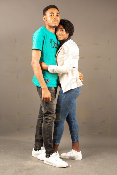 Un jeune couple africain , debout enlacé l'un à l'autre, style décontracté