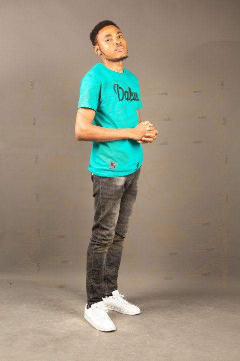 Un jeune-homme africain , se tenant debout avec un air sérieux , style décontracté