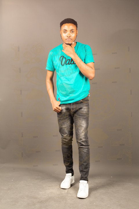 Un jeune-homme africain, débout de face, l'air sérieux , avec un style décontracté