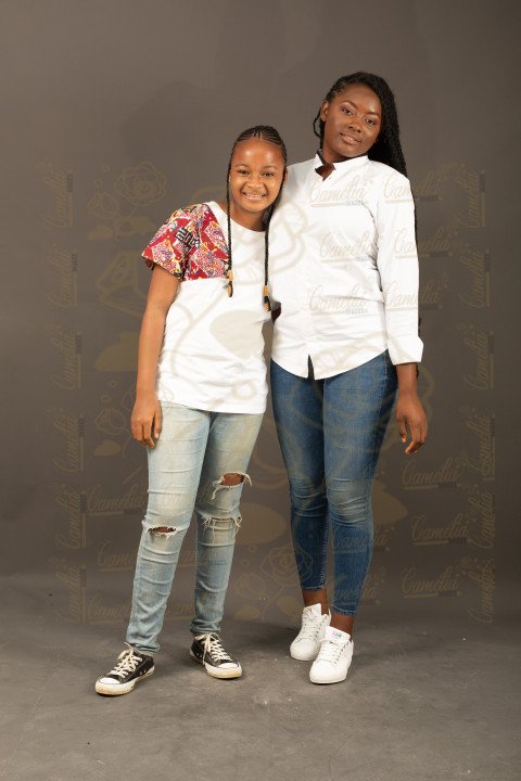 Une jeune femme africaine , assise prêt d'un jeune homme africain , elle repoussant ce dernier avec un air fâché , style décontracté