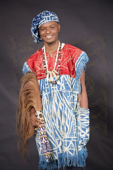 Jeune Africain noir charisme canne tenue traditionnelle regard dominant