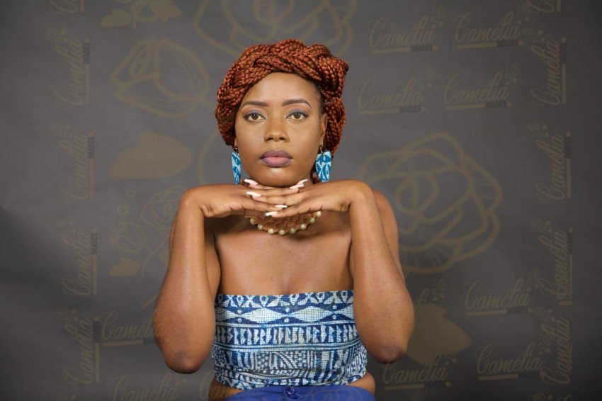 Top model africain teint chocolat robe fleurit coiffure rasta talon transparente