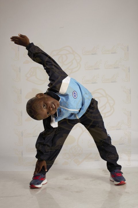 Un jeune-homme africain en noir , faisant des acrobaties , style décontracté et sportif
