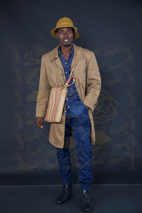 Jeune homme africain teint claire tenue Afrique pantalon noir tennis blanche mains poches