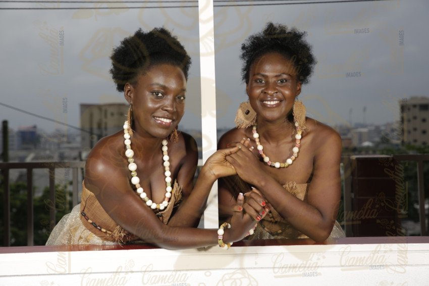 Femmes Africaines belles souriantes tenues accessoires traditionnelles